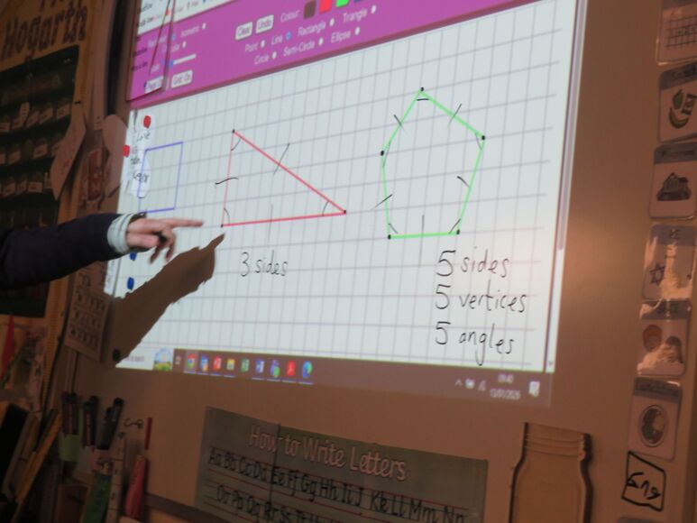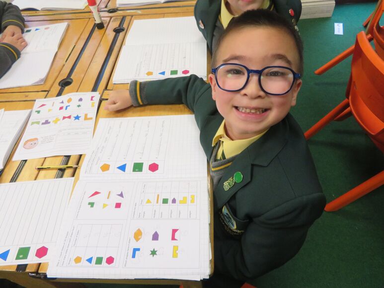 Year 2 have been exploring how to identify and understand different shapes. They have examined the number of sides, the number of vertices (corners), and the number of angles each shape has. The pupils were very quick to recognise and name a wide range of shapes.