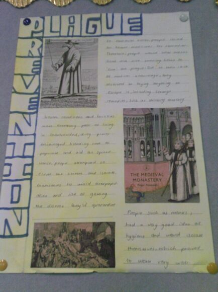 Year 11 have been investigating changes to health and medicine over time for their GCSE course. The class were surprised to learn the practices to stop the plague from spreading were less than healthy. Year 11 produced some convincing public health announcements for display.