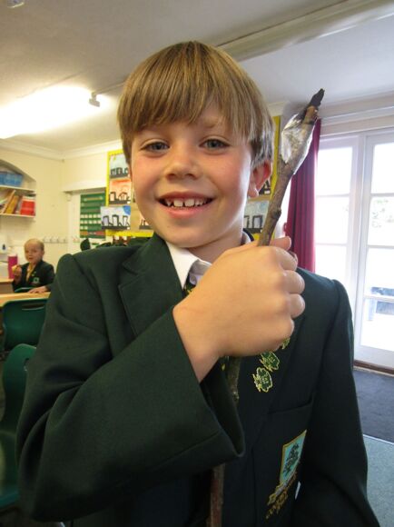 Inspired by his new knowledge of Stone Age tools, Johnnie made a spear at home using a stick from his garden and a piece of slate, which he shaped by bashing it with a stone. Johnnie was very proud of his creation and enjoyed sharing it with his classmates. Wonderful and creative work Year 3.