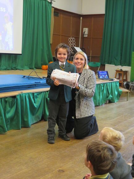 Mrs Moon was delighted to host our whole-school assembly and began by congratulating Daniel in 1K for receiving a “Certificate of Creativity” for an outstanding piece of artwork that has been selected for publication in the Young Writers’ Incredible Inventions national drawing competition.