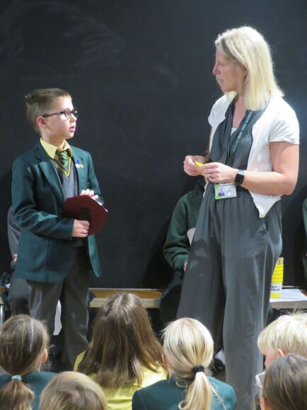 Mrs Stanley hosted the KS1 assembly in the hall, where she was very proud of how well the School Council pupils delivered their speeches about the charities they had chosen. The pupils also took a moment to celebrate Buddy in 2H, who received his Man of the Match trophy, everyone was delighted to applaud him.