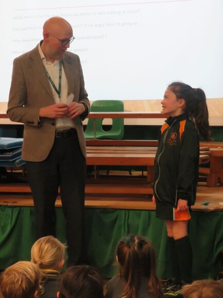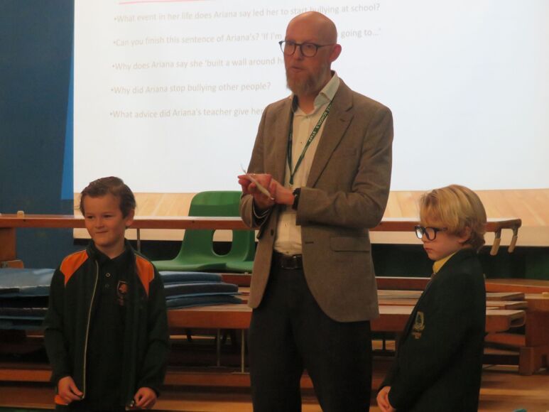 The pupils then watched a video showing a child whose anger and frustration with her home life caused her to be unkind to those around her—pushing people away, building emotional walls, and finding ways to criticise them for things they could not change. The video showed her being challenged by a trusted adult about her behaviour, and how she slowly and carefully rebuilt the relationships around her. She came to understand that, although there were things in her life she could not change, she no longer needed to respond with resentment. Her transformation from bully to friend brought her greater happiness and balance.