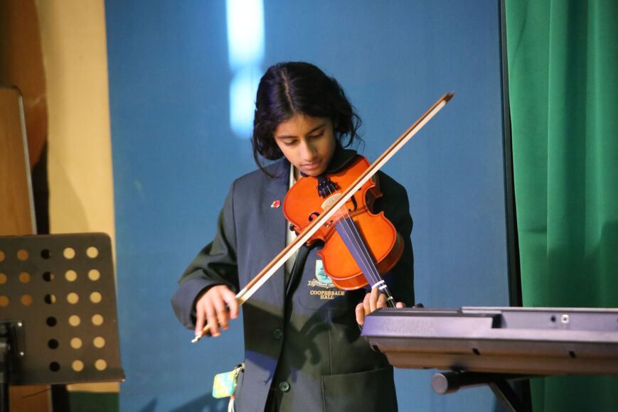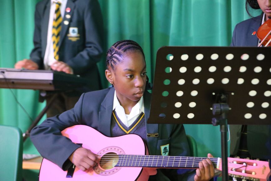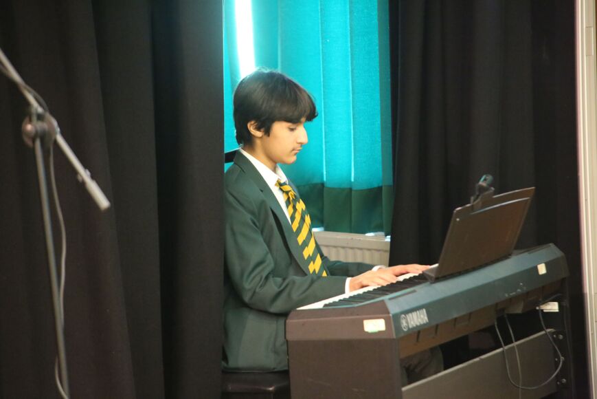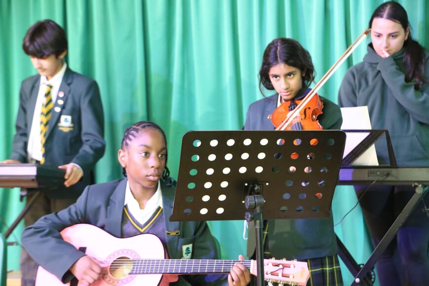Our Poetry and Creative Arts Night celebrated the power of words and imagination. Senior students brought classic and contemporary voices to life, alongside their own original creations. Arabella, Sofia, and Meira from Year 7 shared heartfelt works destined for the ISA Poetry Competition, showcasing emerging talent and creativity. Year 9 pupils Henry, Skylah, and Ava delivered a stirring rendition of Wilfred Owen’s Dulce et Decorum Est, reflecting on its enduring impact. Meanwhile, Ruby, Mimi, and Amayah introduced audiences to the evocative poetry of D. H. Lawrence, reading with passion and insight. The Year 11 pupils stunned us all with a recited and reimagined Act 1 of Macbeth, where the three witches spilled their plans and met Macbeth in a dramatic twist. Adding a touch of humour, Rauf from Year 8 recited I Forgot to Do My Homework and Flo, Year 7 performed the monologue, Jellybeans, earning more than a few giggles from the audience. The poetry was interspersed with musical performances on guitar, piano and vocals from Laaibah, Ivy, Loulou, Amaya, Rauf, Skylah and Gemma. We ended with the senior band and choir performing “Brighter Than The Sun”, a great way to show how words and music together can inspire.