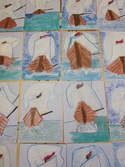 Year 2 have been learning about Christopher Columbus as part of their ‘Famous People’ History topic. In Art, they recreated a painting of his ship, the Niña, using oil pastels. They took great care to blend colours smoothly, add detailed textures to the sails and ocean, and carefully follow the shapes and proportions of the original artwork. Their finished pieces show real attention to detail and a growing confidence in using oil pastels to create rich, vibrant effects.